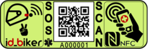 Id_sticker es una etiqueta que, colocada en un lugar visible del casco, en caso de accidente o ante otra necesidad, acercando un móvil con el NFC activado o escaneando el código QR: